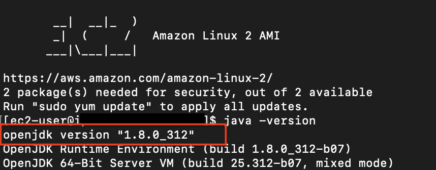 인스턴스 시작을 누르고 새로 생성된 서버 중 하나에 접속해서 자바가 잘 설치되었는지 확인해보자