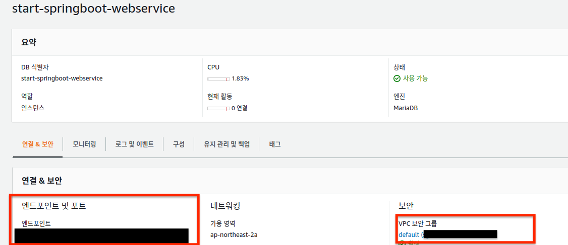 이제 RDS에서의 설정은 모두 완료 되었고, EC2에서 접근만 하면 된다.