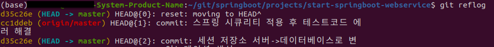Git 커밋 목록을 확인한다. 꼭 필요한 과정은 아니지만 되돌아가고자 하는 커밋 내역을 확인하기 위해 수행한다.