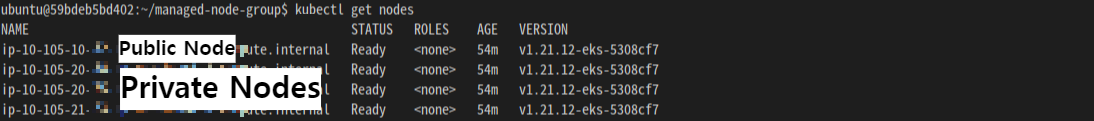아래 사진과 같이 Public node 1개, Private node 3개가 있는것을 확인 할 수 있다.