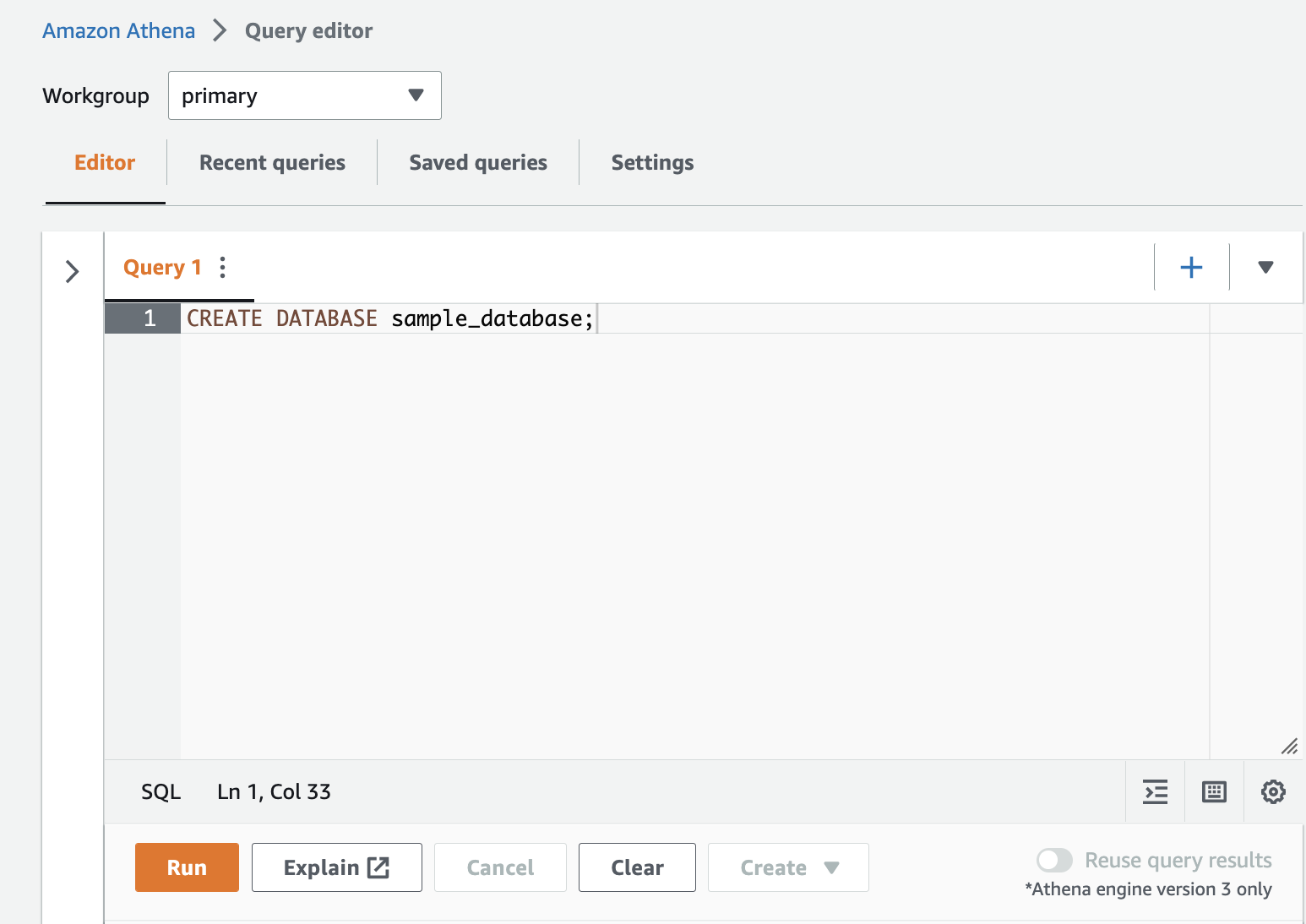 1. Athena 콘솔의 쿼리 에디터에 접속