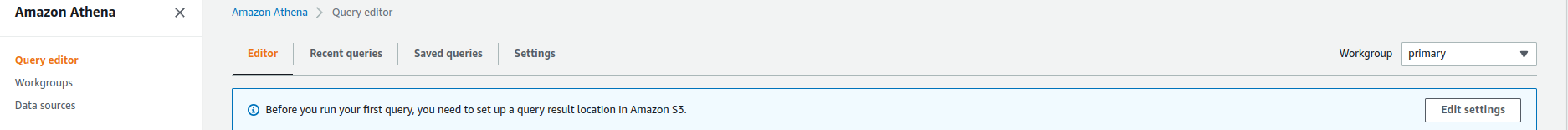 AWS 콘솔에서 Atheana 접속 후 쿼리에디터에 들어간다.