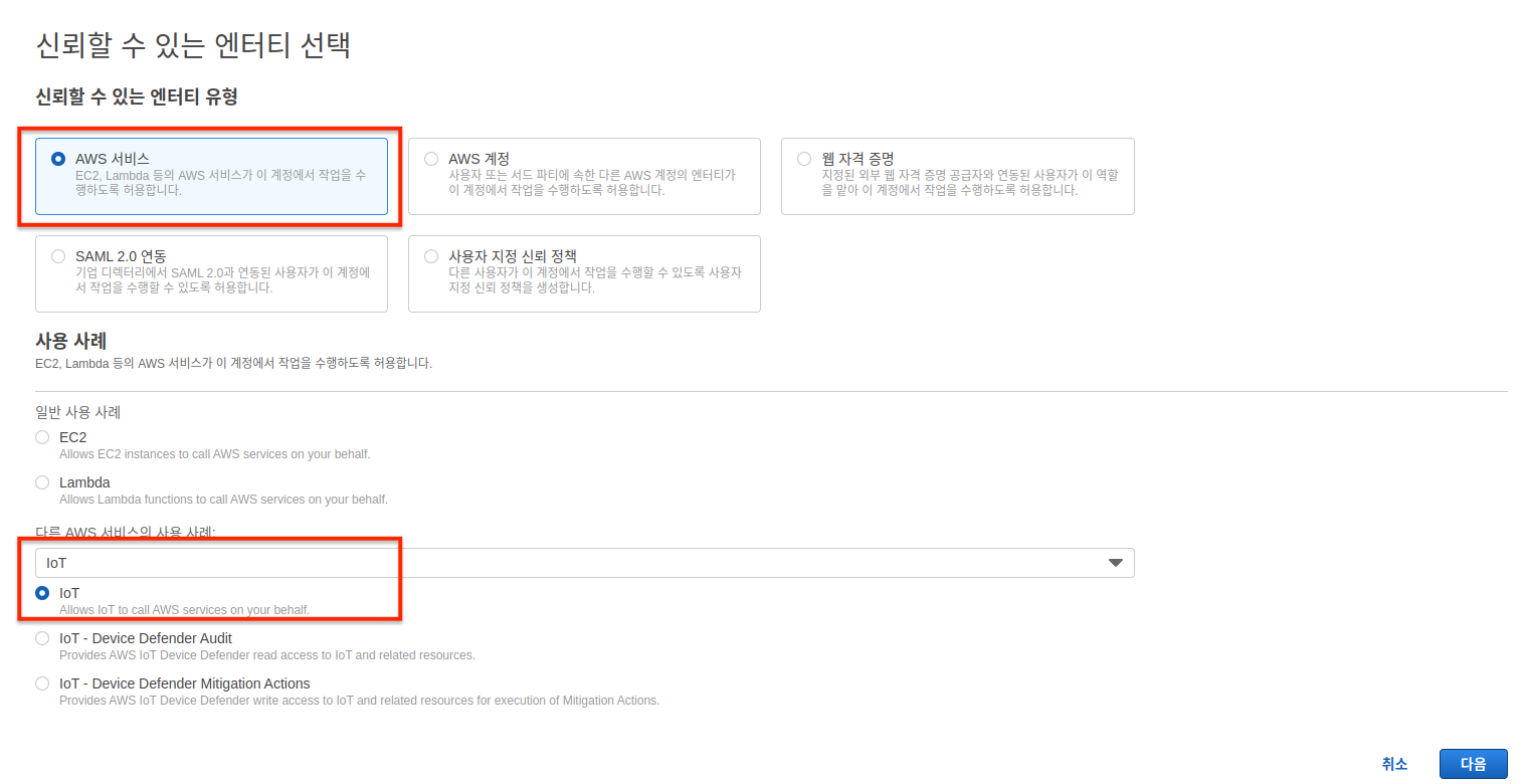 2. 신뢰할 수 있는 엔터티 유형 - AWS 서비스 & IoT 선택