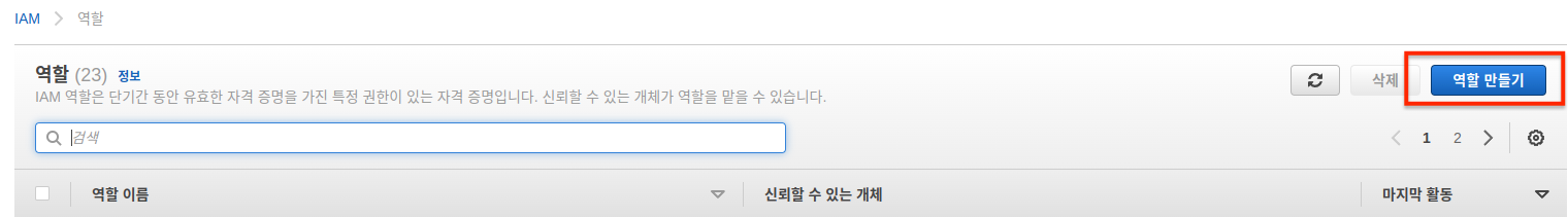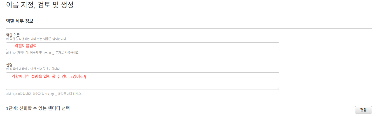 4. 역할 이름과 설명 입력후 생성 클릭!